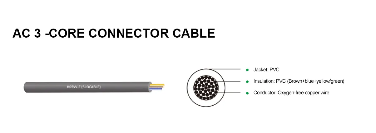 | 3 G 2.5 mm² | 2.5mm² | 3 johtinta. | 3.6 ± 0.10 mm | 10.5 ± 0.2 mm | Ruskea/Sininen/Keltainen-vihreä. | 300/500V |