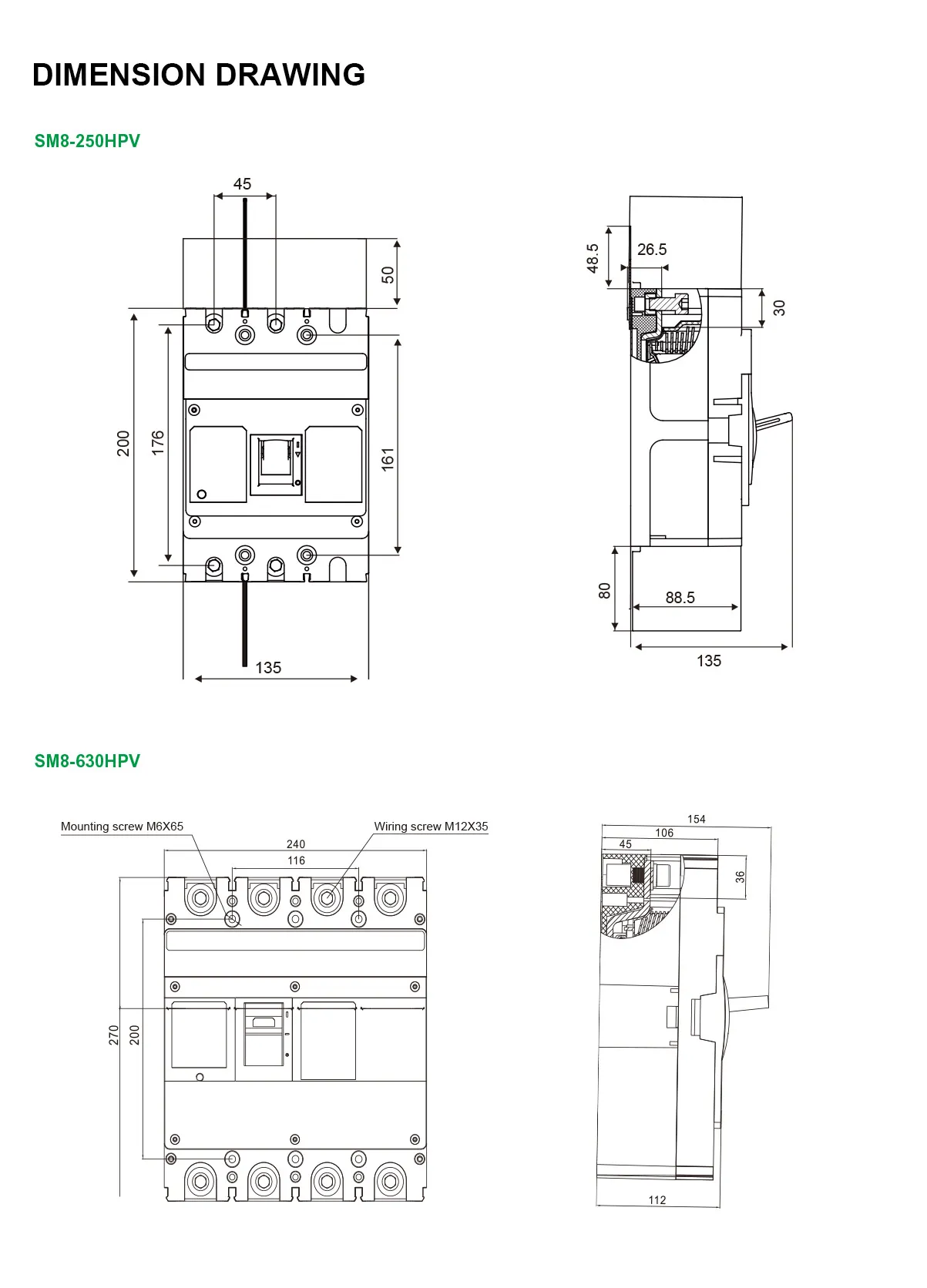 | Tuotemalli | SM8-250HPV /3P 1500V | SM8-630HPV /4P 1500V |
