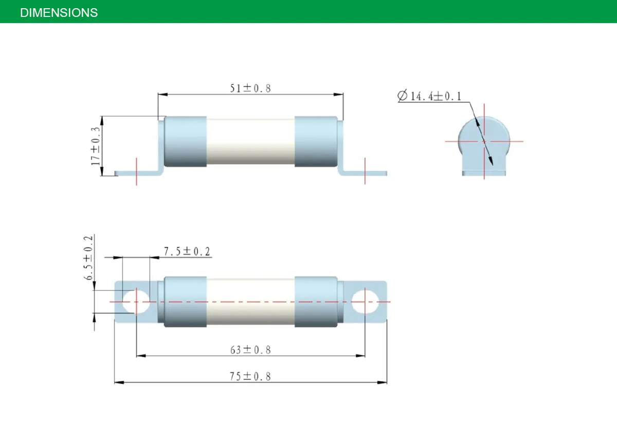 • Materiaalikuvaus: 95 alumiinioksidipohjainen korkean lujuuden keramiikka ja tuodun materiaalin sulake-elementti.