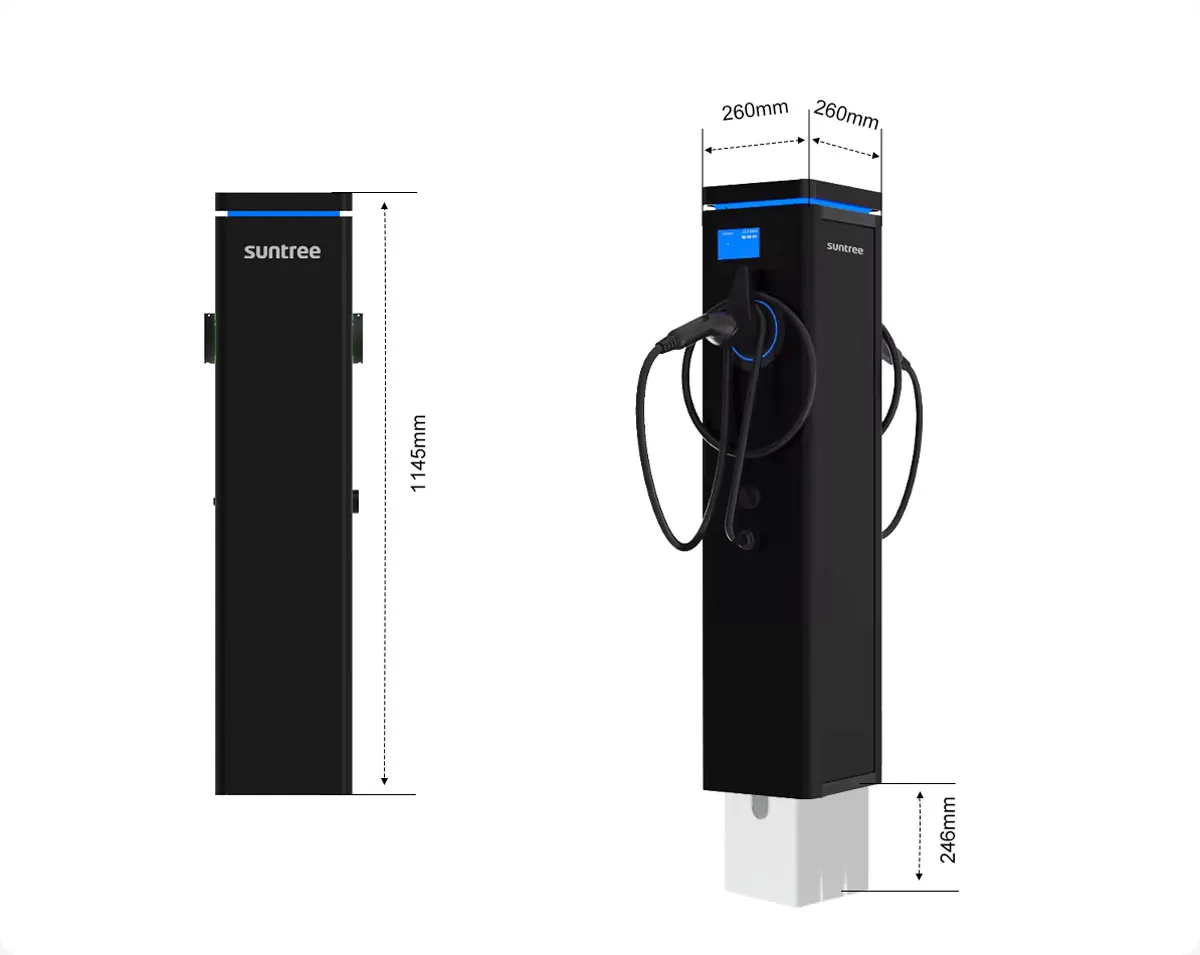 • Jokainen pistorasia tukee jopa 7,4 kW tai 22 kW lataustehoa