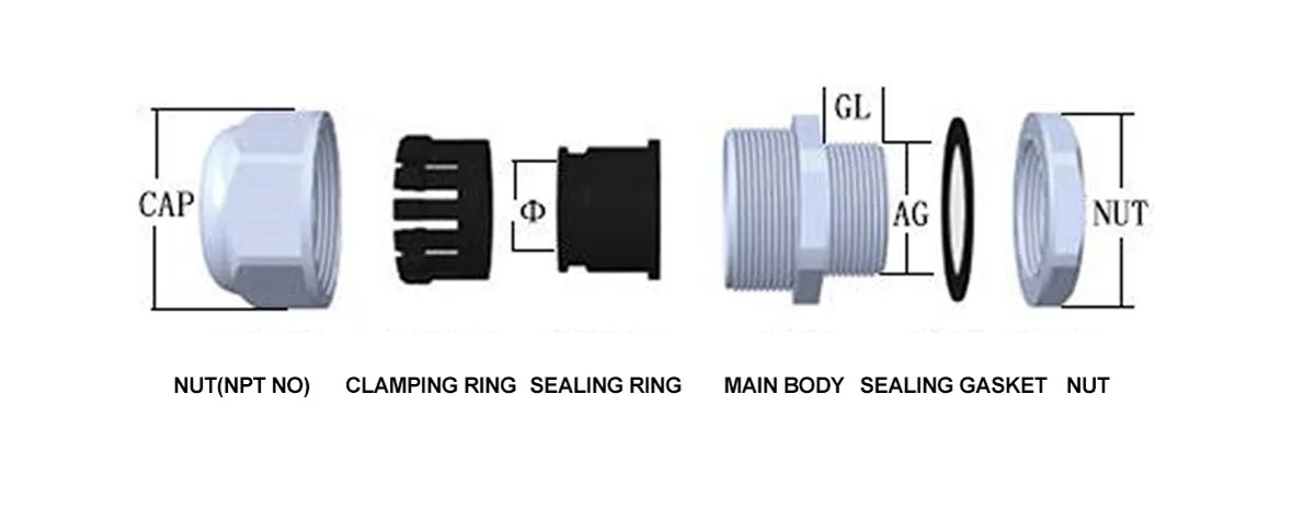 | Tuotenumero | Metriksi | φ mm | GL mm | Mutteri/korkki mm |