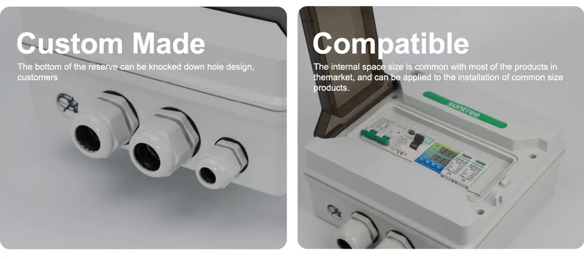 • Valinnaiset sisäiset liitäntäpalikat helpottavat maan ja neutraalijohtimien hallintaa ja parantavat ulkonäköä