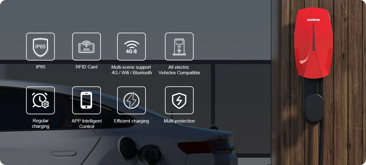 • Type 2 (IEC 62196-2) ja GB/T -latausliitin mahdollistaa korkean joustavuuden ja yhteensopivuuden kaikkien sähköautojen kanssa.